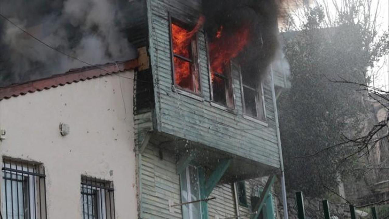 Üsküdar'da bir ahşap binada çıkan yangını söndürme çalışmaları sürüyor.