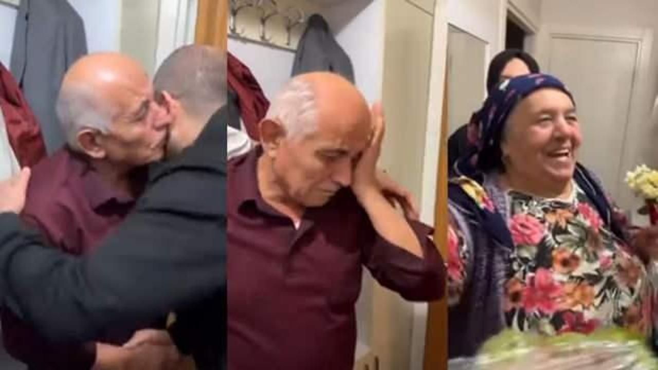 İstanbul'da 50 yıldır evli olan Ömer (78) ve Zeynep Mayda (73) çifti, 13 torunu tarafından yapılan sürpriz karşısında duygu dolu anlar yaşadı. Torunlarını karşısında gören dede gözyaşlarına hakim olamadı.