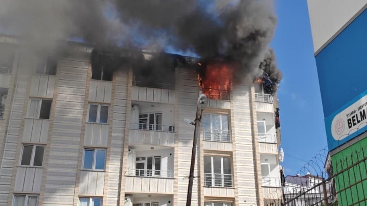 İstanbul'un Esenyurt ilçesinde 4 katlı binanın son katında çıkan yangın, kısa sürede dairenin tamamını saran yangın çevrede paniğe neden oldu.