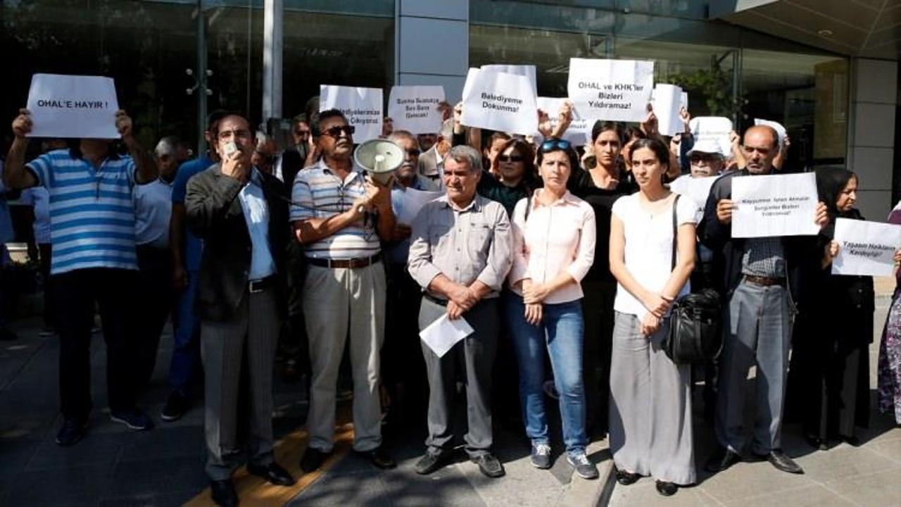 İzmir'de, HDP'lilerin Kanun Hükmünde Kararnameyle belediye başkanları yerine görevlendirme yapılmasını protesto etmek amacıyla oturma eylemi yapmasına izin verilmedi.