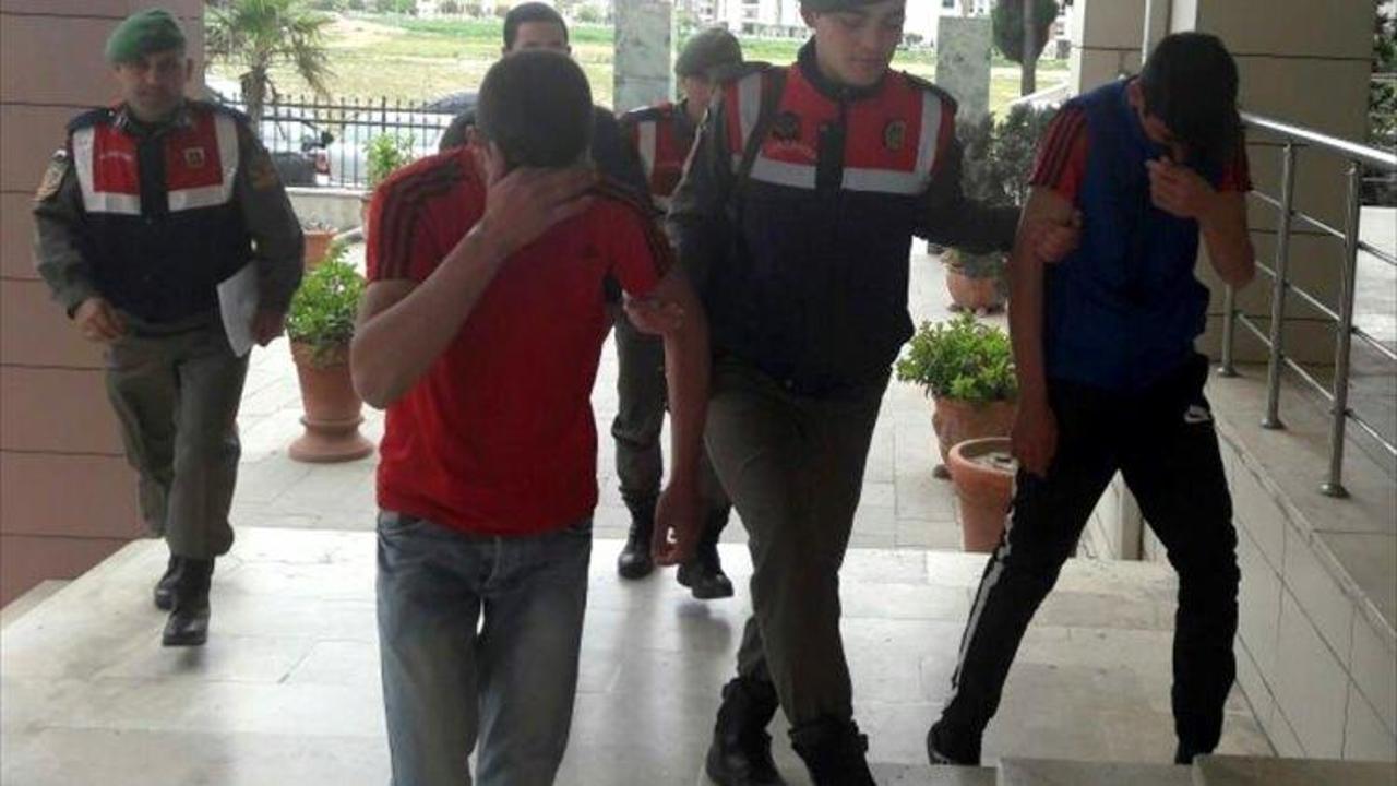 Gözaltına alınan zanlılar, işlemleri için ilçe jandarma komutanlığına götürüldü.