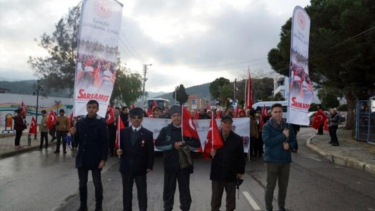 İzmir'in Güzelbahçe ilçesinde Sarıkamış Harekatı'nın 104. yılı nedeniyle anma yürüyüşü düzenlendi.