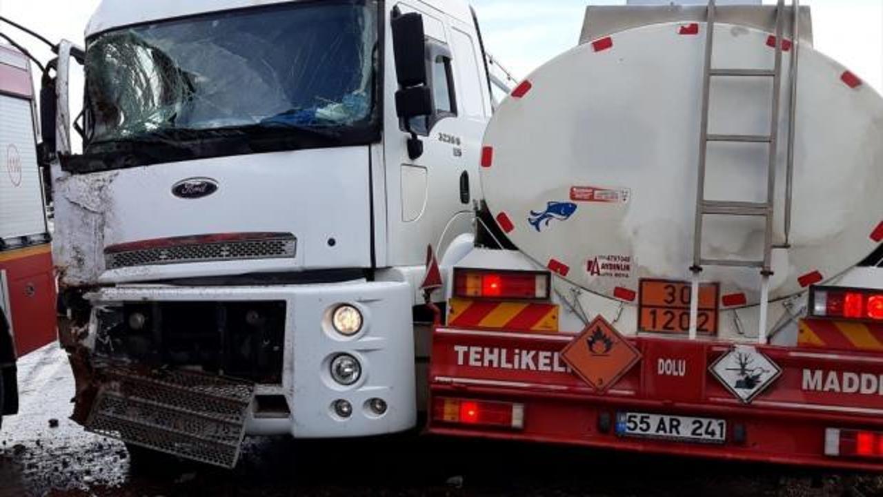 Kazada şoförler ile 55 AR 241 plakalı tankerde bulunan Mustafa D. yaralandı.