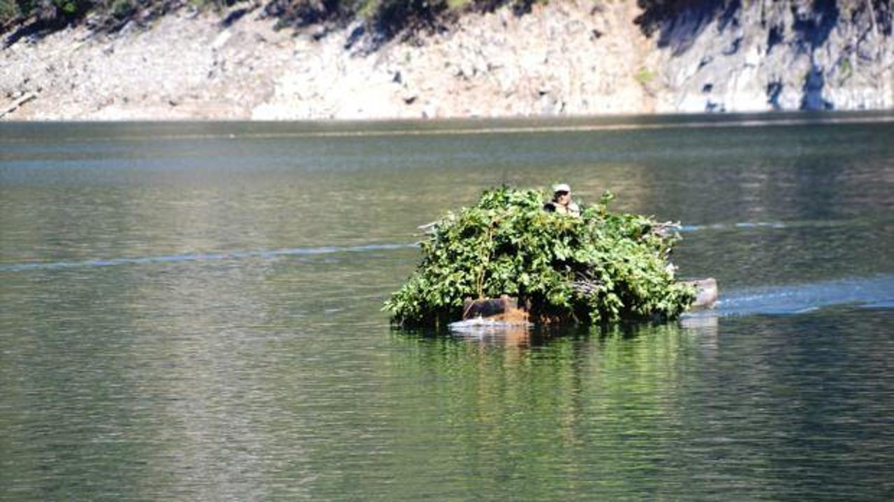 Sarp ve engebeli arazide kesilen ve barajın kıyısına indirilerek tahta kayığa yüklenen defneler daha sonra buradan indirilerek kamyonlarla fabrikalara gönderiliyor.