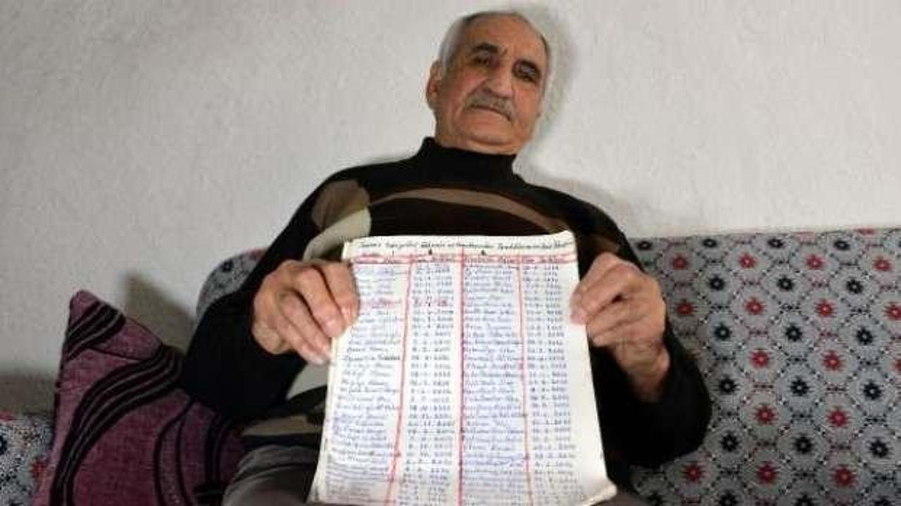 Kahramanmaraş'ın Göksun ilçesinde, 73 yaşındaki emekli öğretmen Ali Akmaz, 28 yıldır ailesinden, arkadaşlarından, tanıdıklarından ölenlerin isimlerini ölüm tarihleriyle birlikte 'Ölüm günlüğü' ismini verdiği bir deftere kaydediyor.