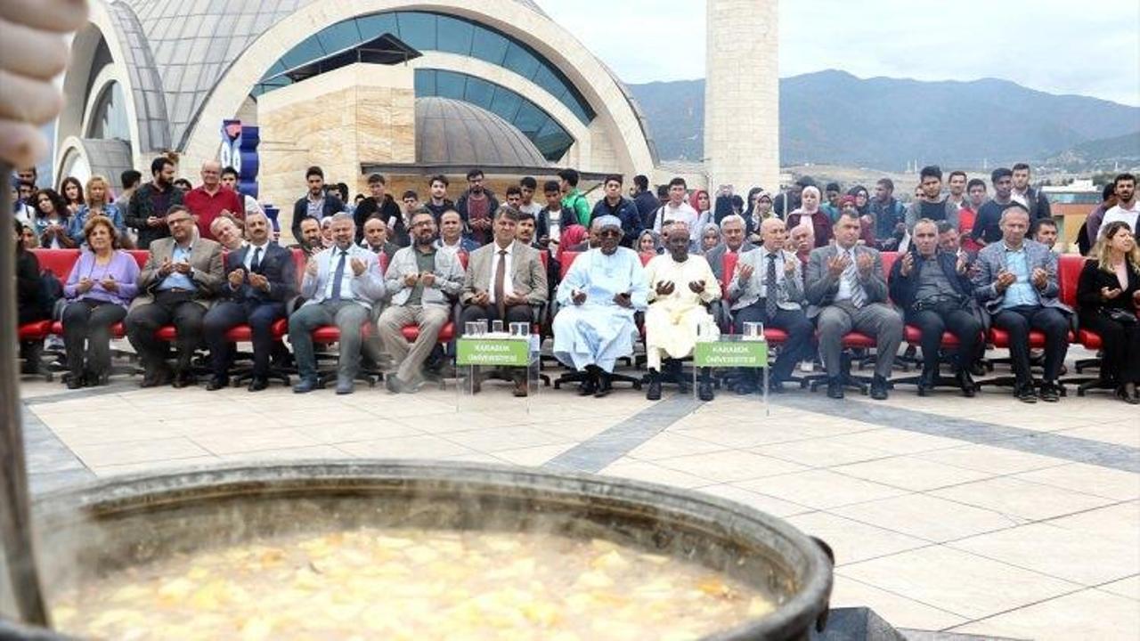 Karabük Üniversitesi (KBÜ) tarafından düzenlenen "Aşure Günü" etkiliğinde 50 farklı ülkeden öğrencinin katkısıyla aşure yapıldı.