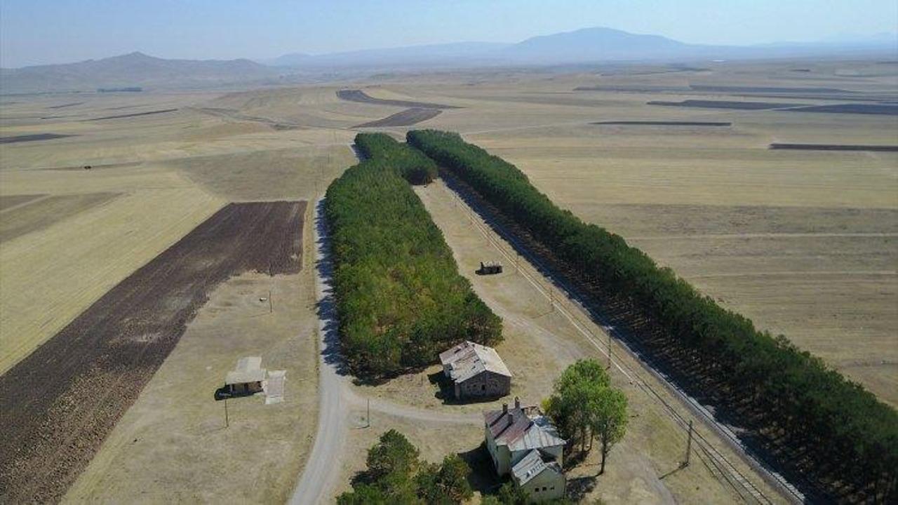 CÜNEYT ÇELİK / HÜSEYİN YILDIZ - Kars'ın Selim ilçesinde 1969 yılında Devlet Demiryollarınca ağaçlandırılan, bozkırlar arasındaki Benli Ahmet Tren İstasyonu ziyaretçilerine görsel şölen sunuyor.