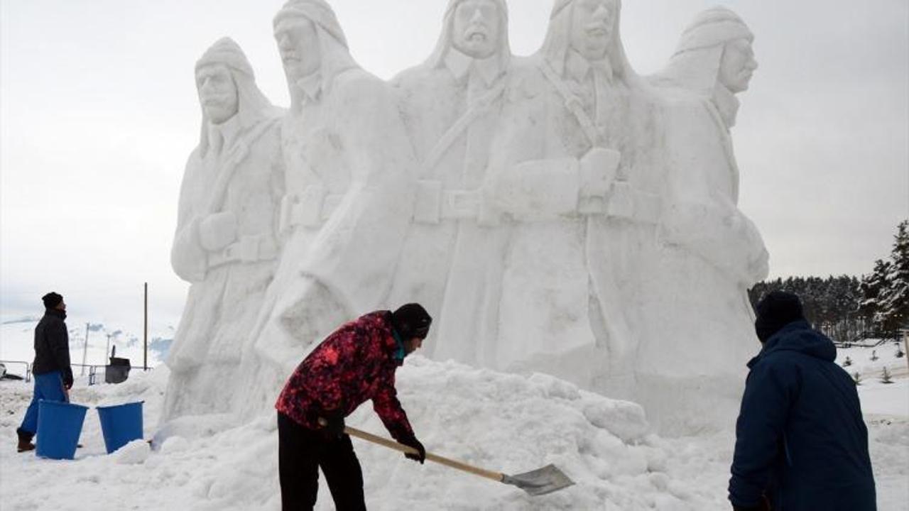 Sarıkamış Harekatı'nın 103. yılı anma etkinliklerinde sergilenecek kardan asker heykellerinin yapımı tamamlandı.
