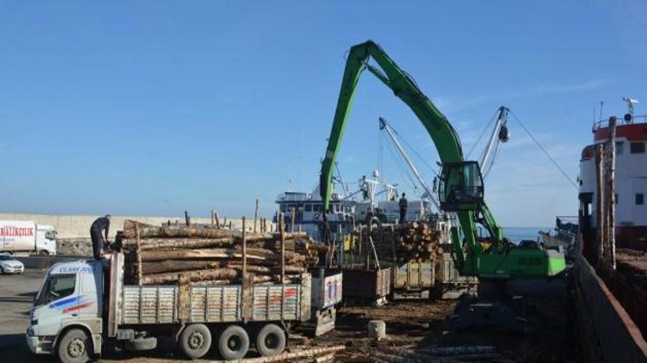 Türk bayraklı bir gemiyle İnebolu Limanı'na getirilen 2 bin ton ağacın Kastamonu'ya nakliyesine başlandı.