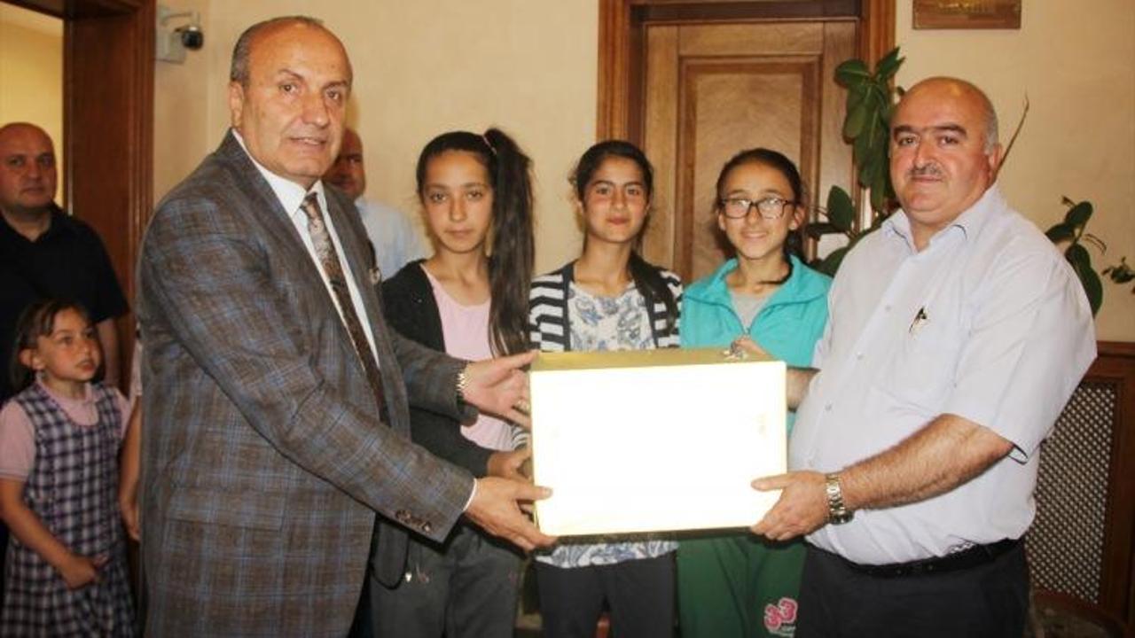 Taşköprü Belediyesi’nde düzenlenen törende dereceye giren okullara hediyeleri Belediye Başkanı Hüseyin Arslan tarafından verildi.