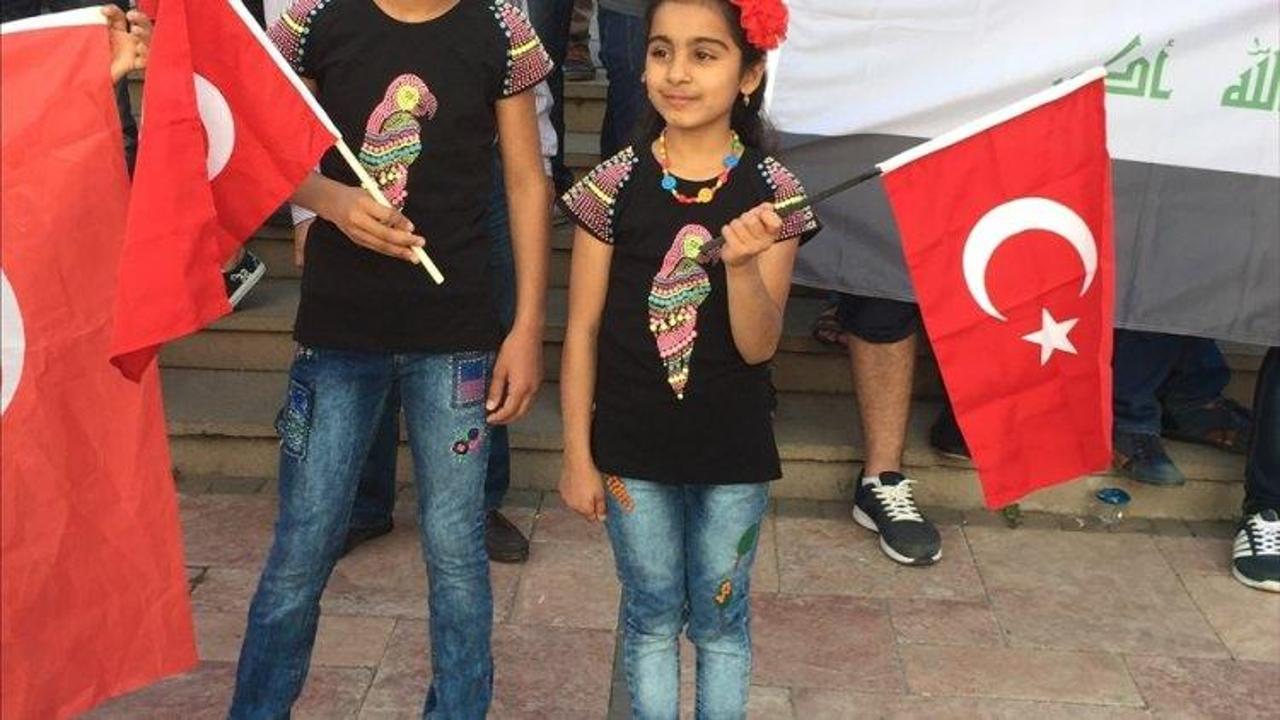 Irak, İran ve Suriyeli bir grup darbe girişimini protesto etti. Iraklı iki kız kardeş İstiklal marşını okudu.
