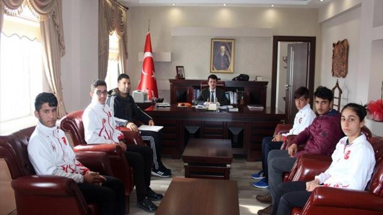 Başarılı sporcular, İncesu Kaymakamı Cebeci'yi ziyaret etti.