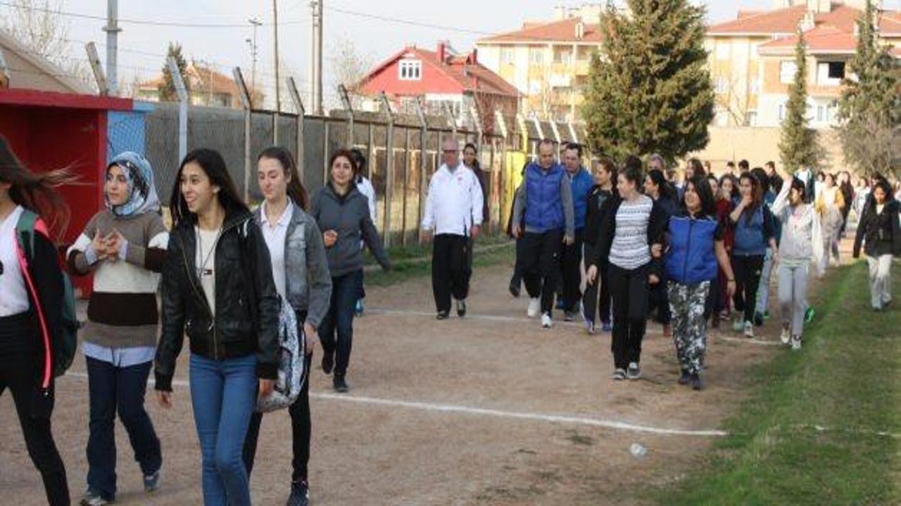 Grup daha sonra stadın etrafında yürüyerek, Beden Eğitimi Öğretmeni Güneş Baran önderliğinde çeşitli fiziksel hareketler yaptı.