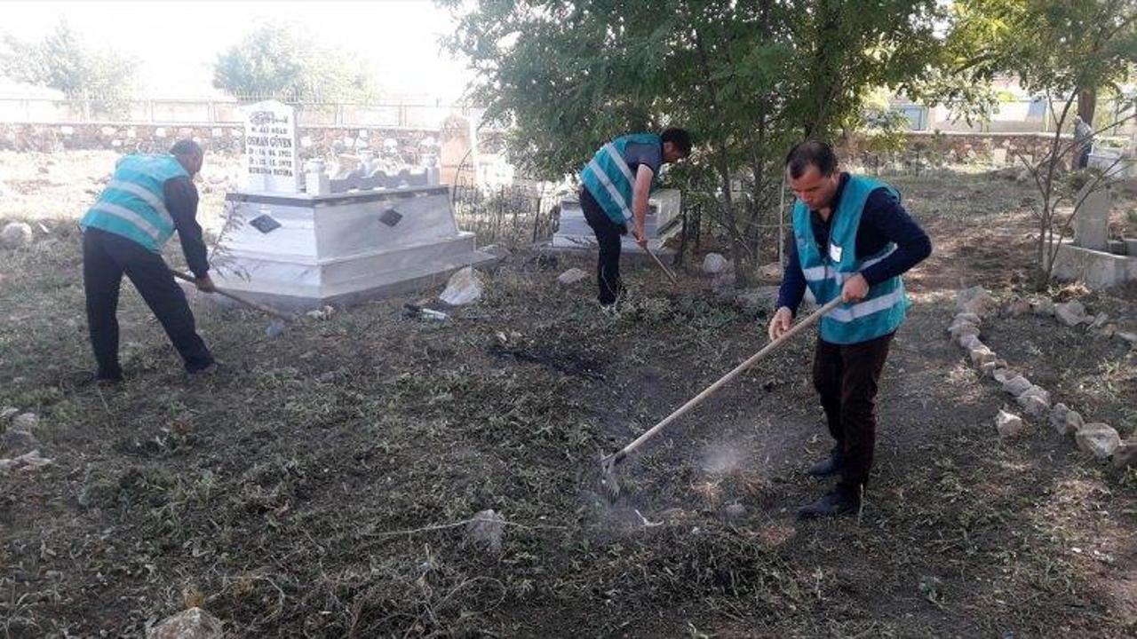 Kırşehir'de, farklı suçlardan kamu hizmeti cezası alan yükümlüler, Kurban Bayramı öncesinde köy mezarlıklarının temizliği, bakım ve onarımı çalışmalarında görev aldı.