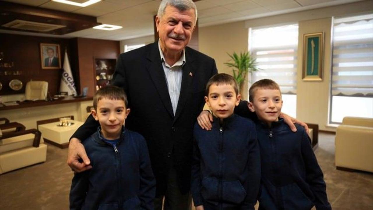 Cumhurbaşkanı Recep Tayyip Erdoğan'a karşı duydukları sevgiden dolayı 8 yıl önce dünyaya gelen üçüzlerine, ''Recep, Tayyip ve Erdoğan'' isimlerini veren Emine ve Serdar Yurtoğlu çifti, Kocaeli Büyükşehir Belediye Başkanı İbrahim Karaosmanoğlu'nu ziyaret etti.