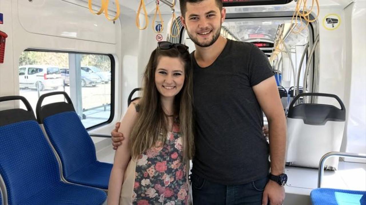 Kocaeli'de vatman olarak çalışan 25 yaşındaki Eray Altuntaş, kız arkadaşına tramvayda anonsla evlenme teklif etti.