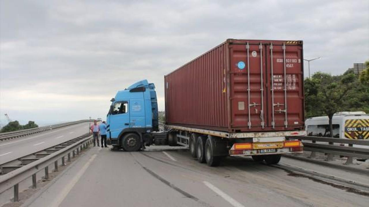ABONE OLAlınan bilgiye göre, Körfez D100 karayolundan İstanbul istikametine seyir halinde olan Aydın Akbaş idaresindeki 34 GPJ 76 plakalı konteyner yüklü tır, Mehmet Beşmiş idaresindeki 63 KZ 484 plakalı otomobile arkadan çarptı.