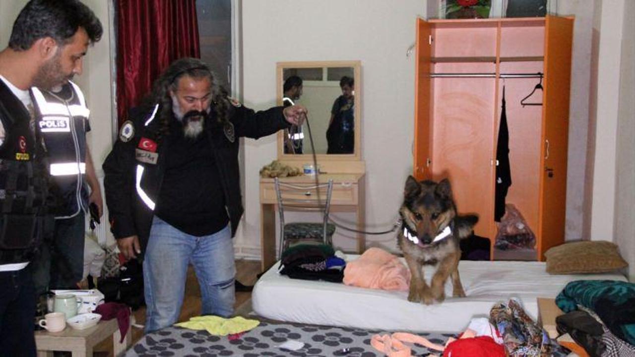 Narkotik köpeği Ares'in de kullanıldığı aramalarda bir miktar esrar ile sahte içki bulundu.