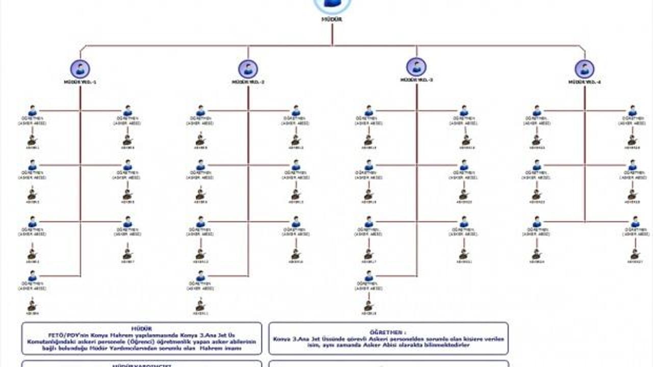 Özellikle itirafçı olan kişilere gösterilen detaylı şemalar, bu kişilerin örgütün sırlarını anlatmasında da kilit rol oynadı. Şemayı gören FETÖ/PDY üyesi şüpheliler, kendilerinin şema kapsamında örgütün hangi kademesinde yer aldığını, başka kimlerin olduğunu anlattı.