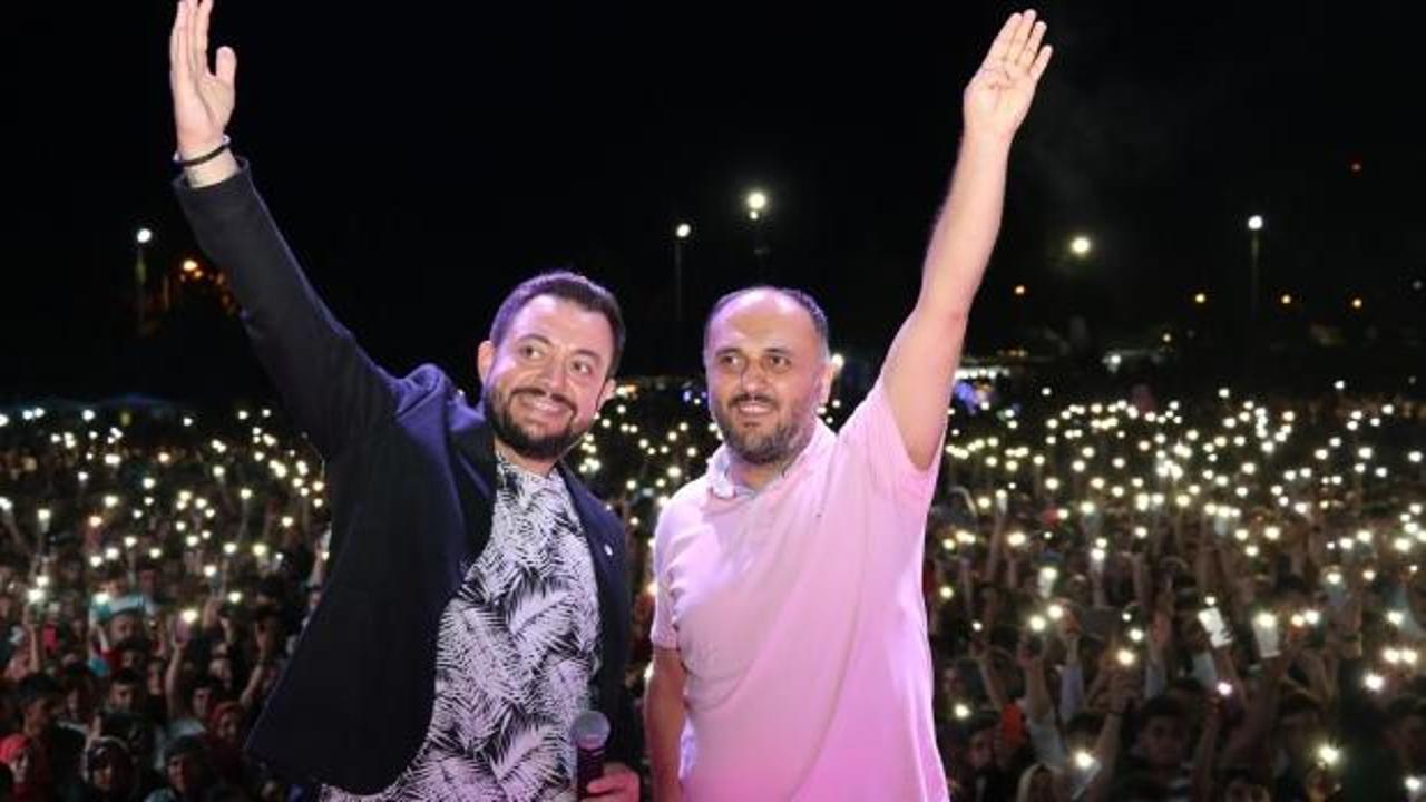 Konser sonrası sahneye çıkan Belediye Başkanı Murat Özaltun, müthiş sahne performansından dolayı kutladığı sanatçı Hüseyin Kağıt’a fotoğrafının yer aldığı bir tablo hediye etti.