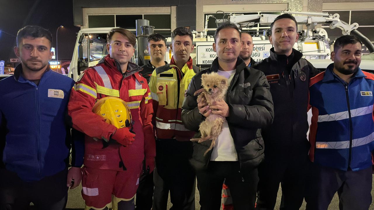 Konya Büyükşehir Belediyesi İtfaiye Dairesi Başkanlığı ve KOSKİ Genel Müdürlüğü ekipleri, kanalizasyon borusuna düşerek mahsur kalan minik köpeği 6 saat süren titiz bir çalışmanın ardından kurtardı.