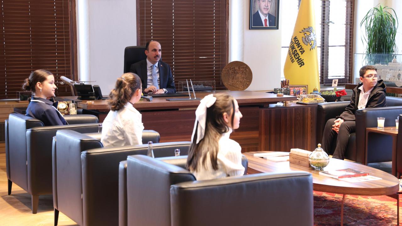 Konya Büyükşehir Belediyesi Çocuk Meclisi Başkanı İnci Kaşıkçı ve Meclis üyesi çocuklar Başkan Altay’ı ziyaret etti.