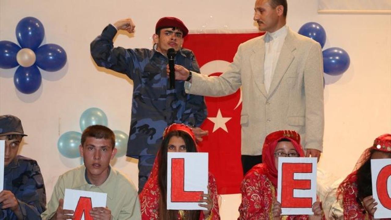 Zihinsel ve bedensel engelli öğrencilerin gösteriler sunduğu programda, asker kıyafeti ve yöresel kıyafet giyen öğrenciler Çanakkale Savaşları'nı canlandırdı.