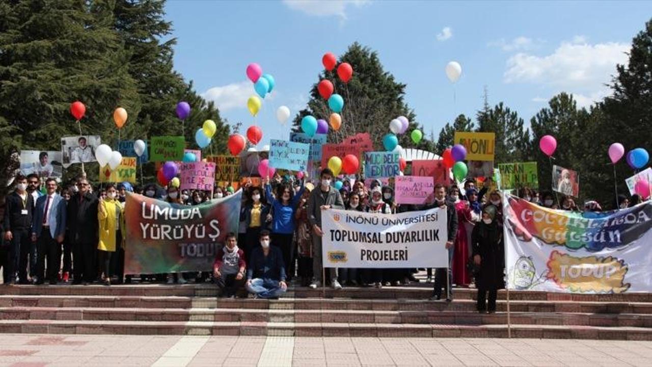 ABONE OLÜniversite Sosyal Tesisleri önünde buluşan, aralarında bisikletli bir grup gencin de olduğu yaklaşık bin üniversite öğrencisi, ellerinde rengarenk uçan balonlar ve lösemi hastası miniklerin isimlerinin yazılı olduğu dövizlerle "Umuda Yolculuk Yürüyüşü" gerçekleştirdi.