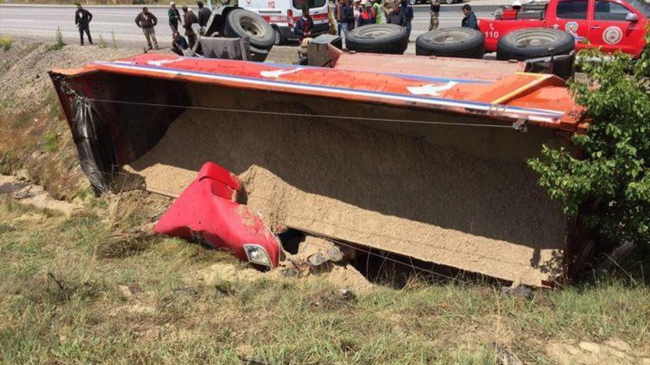 Alınan bilgiye göre, Mehmet Ali Ecevit idaresindeki kum yüklü 38 D 7185 plakalı tır, Malatya-Kayseri karayolu Kozlucu mevkisinde devrildi.