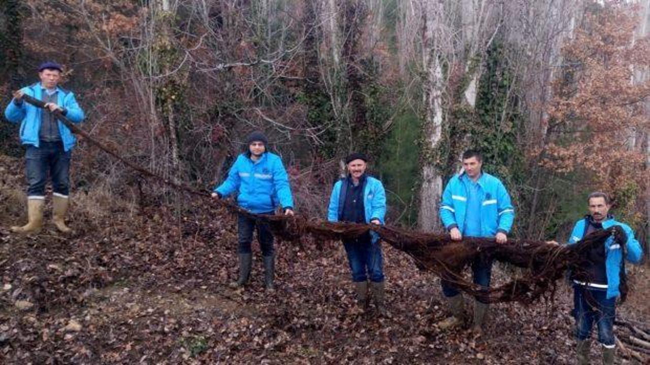 Su iletim hattında bakım ve onarım çalışmaları gerçekleştiren ekipler, su borusundan 8 metre ağaç kökü çıkardı.