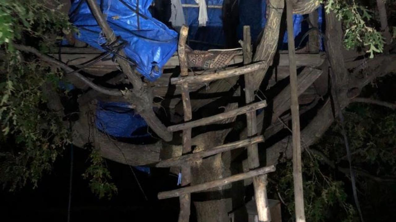 Manisa Sarıgöl'de hakkında 5 yıl hapis cezası bulunan şahıs, ormanlık alanda meşe ağacının üzerine yaptığı çadır içinde uyurken yakalandı.
