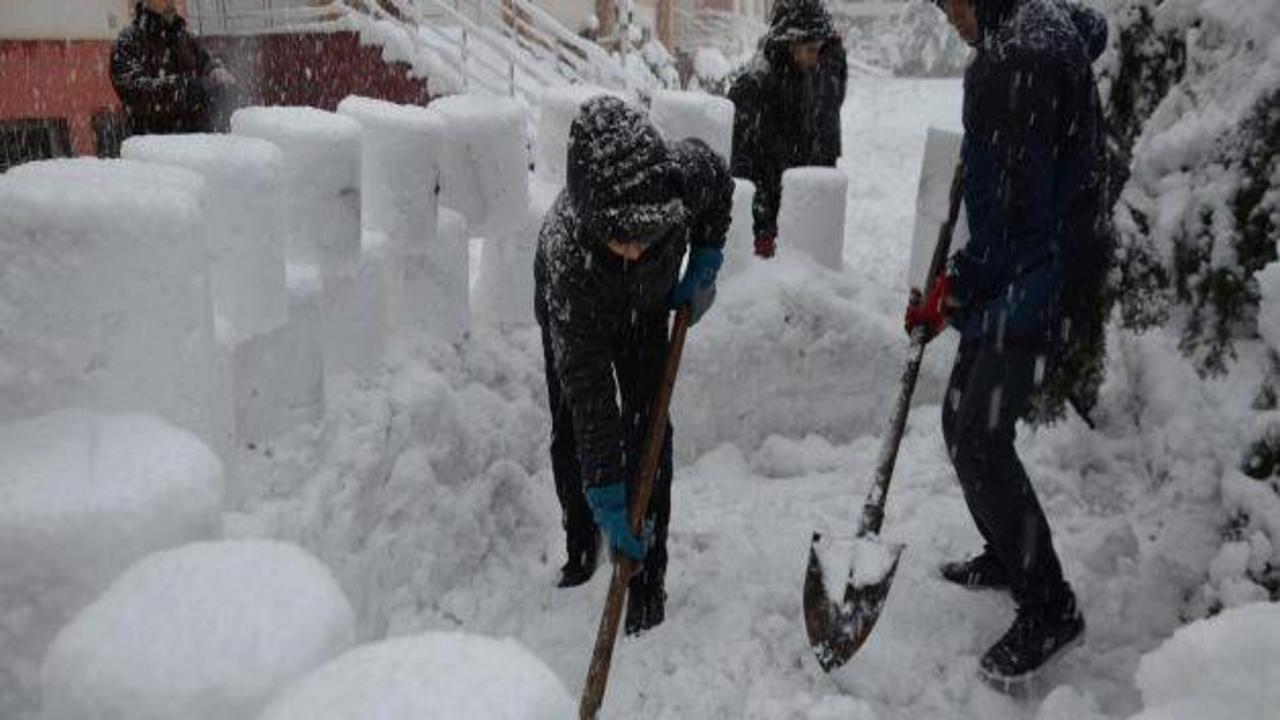 Kentte bir grup ortaokul öğrencisi, tarihi dokunun korunması isteklerini "kardan kale" yaparak anlattı