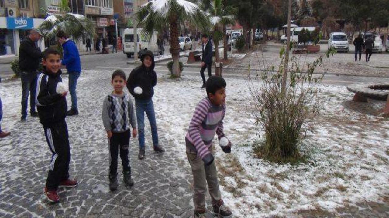 Çocuklar, gece yağan ve kısa sürede eriyen karla azda olsa oynama fırsatı buldu.
