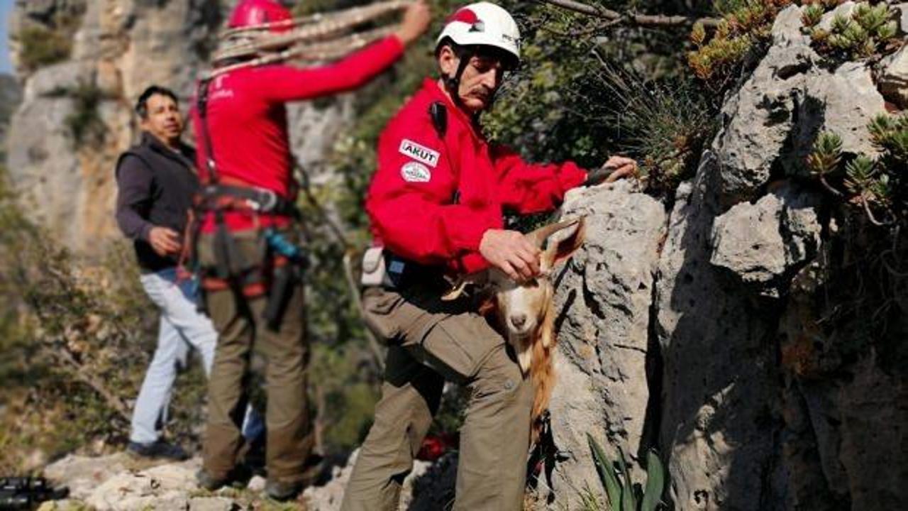 Mersin'in Erdemli ilçesinde, dağ yamacında 2 gün mahsur kalan keçi, AKUT Mersin Şubesi ve itfaiye ekiplerinin 5 saatlik operasyonuyla kurtarılarak, sahibine teslim edildi.