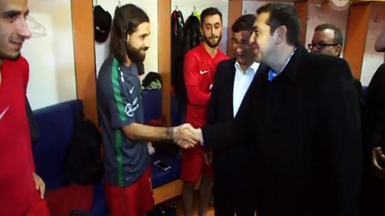 Başbakan Davutoğlu ve Yunanistan Başbakanı Tsipras Türkiye-Yunanistan maçı sonrası soyunma odasına inerek futbolcuları tebrik etti.