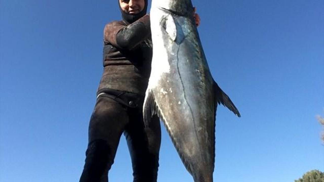 Elektronik teknisyeni Kadir Karaışık (40), avlanmak için Turgutreis Mahallesi açığında serbest dalış yaptı. Karaışık, yaklaşık 10 metre derinlikte 40 kilogramlık 1 metre 50 santimetre boyunda liça cinsi balığı zıpkınla avladı.