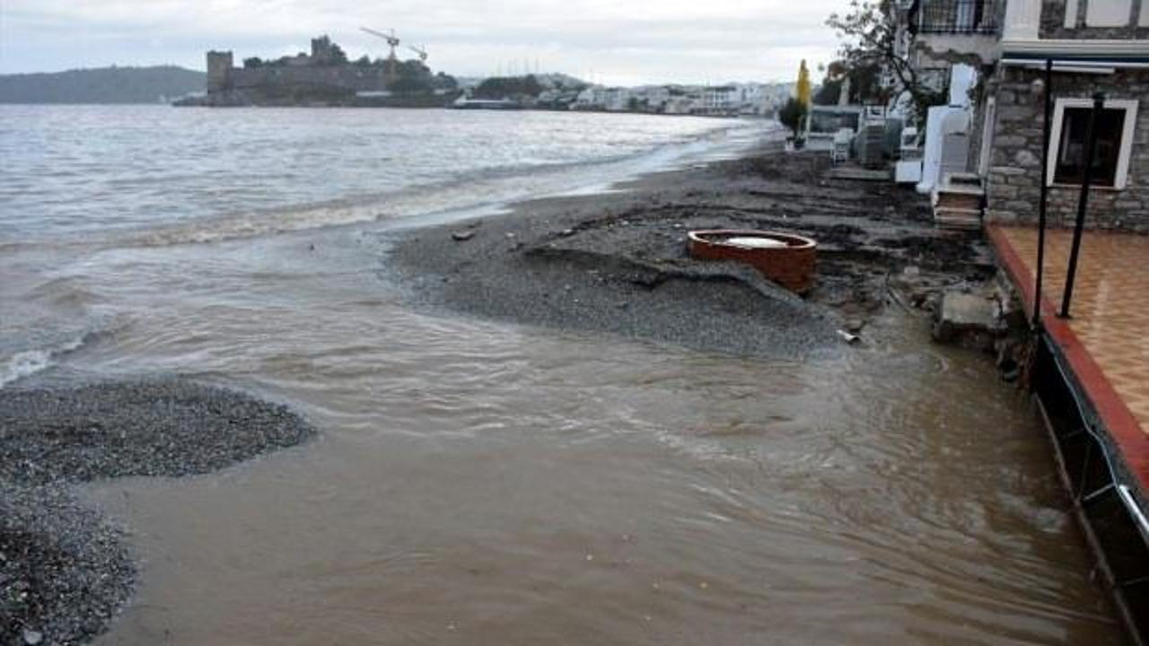 Muğla'nın Bodrum ilçesinde sağanak hayatı olumsuz etkiliyor.