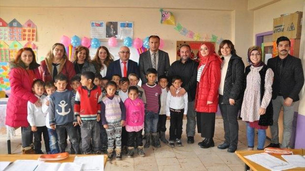 ABONE OLEker ve öğretmenler, İlçe Milli Eğitim Müdürü Deniz Edip'e ziyaret gerçekleştirdikten sonra, kışın yardım malzemesi gönderdikleri 14 köy okulunu gezdi.