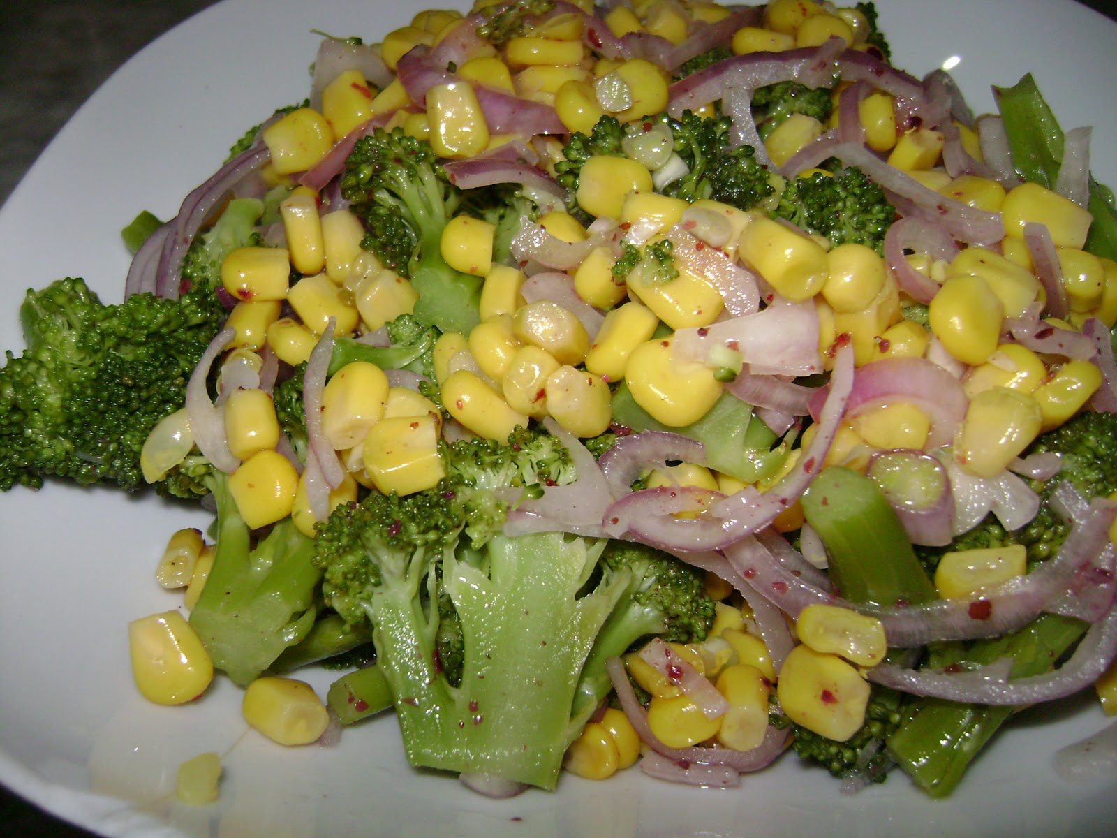 Brokoliyi bir tencerede hafif diri kalacak şekilde haşlayın. Bu arada soğanı yarım ay şeklinde ince ince dilimleyin. Soğanları bir süzgece alıp üzerine bir miktar tuz ekleyip iyice ovun. Su ile tuzunu akıtıp kenarda suyunu süzdürün. Haşlanan brokolinin suyunu süzdürüp servis tabağına alın. Üzerine soğan, mısır ve sos malzemelerini ilave edip iyice karıştırın. Ilık olarak servis yapın.