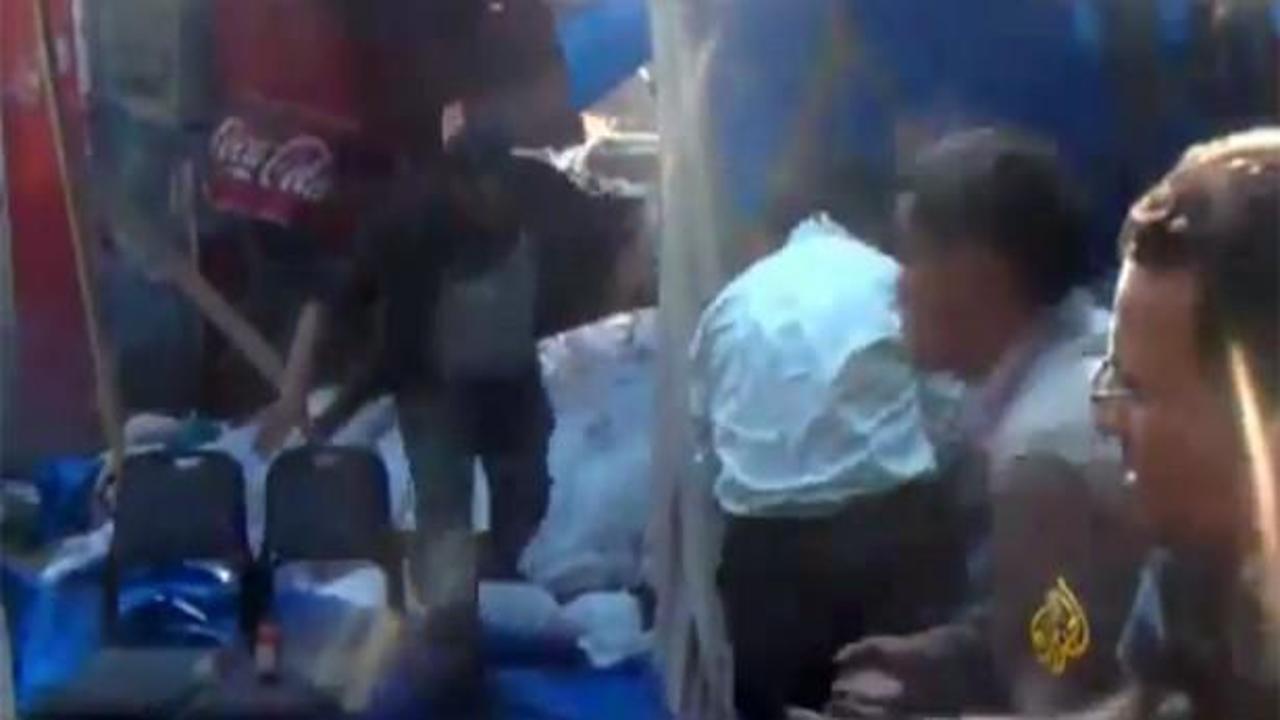 ABONE OLSosyal paylaşım sitesinde paylaşılan görüntülerde polisin yaptığı müdahale sonrası meydanda toplanılan naaşların bir buldozer tarafından sürüklendiği görülüyor. Sedyelerde bulunan bazı yaralıların buldozerin müdahalesi sonrası yere düştüğü, hayatını kaybedenlerin naaşlarının ise buldozer tarafından sürüklendiği, müdahale ekiplerinin meydandaki çadırları kontrolsüz bir şekilde yıktığı izleniyor. Naaşların ezildiğini gören çevredekiler ise olanları çığlıklar eşliğinde izliyor.