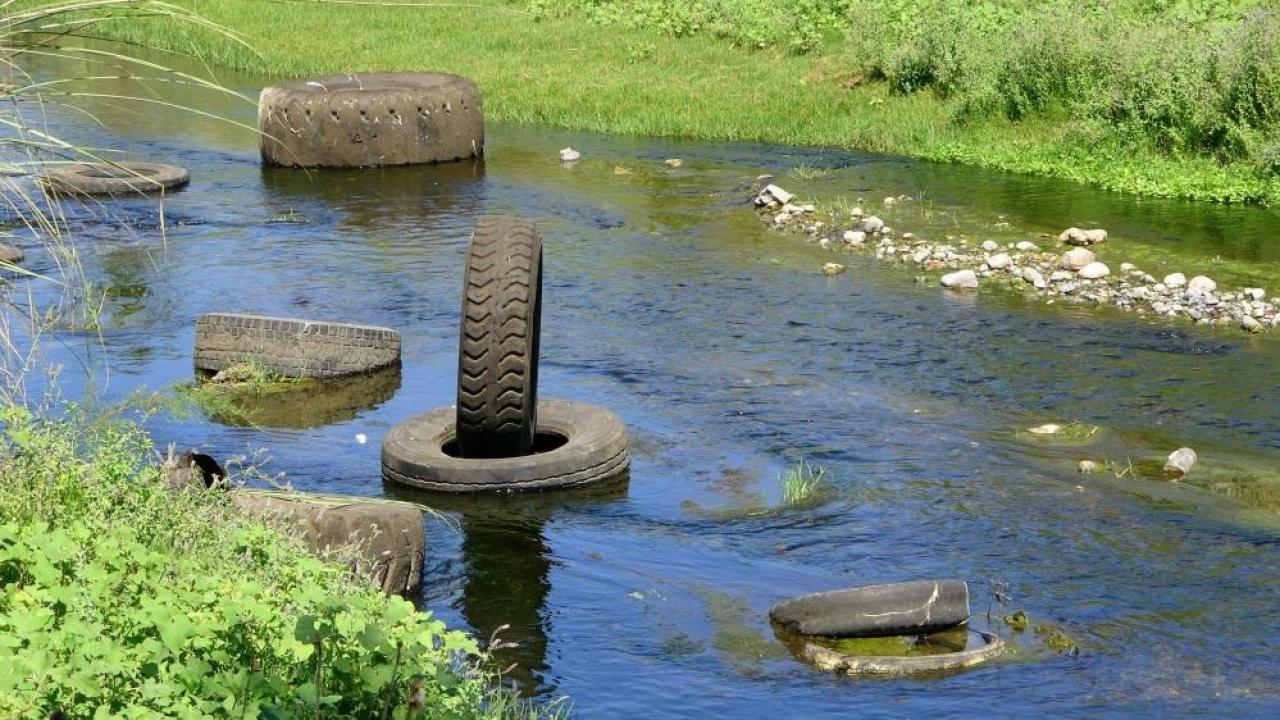 Osmaniye’nin Toprakkale ilçesinden geçen Karaçay Deresi’ne atılan onlarca otomobil, kamyon ve ağır iş makinesi lastikleri çevre kirliliğine neden oldu.