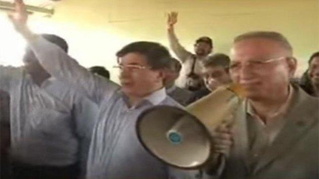 Bu sırada devreye giren Davutoğlu, "Esselamü Eleyküm, Esselamü Eleyküm, Esselamü Eleyküm, Esselamü Eleyküm Ya İhvan (Ey karşelerim)" diyerek kalabalığı sakinleştirmeyi başarıyor.
