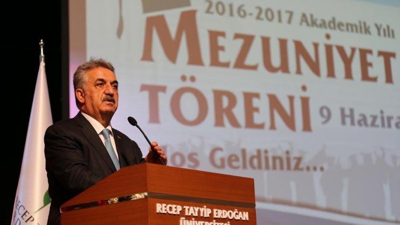 "Üniversiteler, ülkenin kalınması, sosyal hayatın zenginleşmesi ve dünya milletleri arasında ülkemizi daha ileri taşıma noktasında son derecede önemli işlev gören kurumlardır. 2006 yılında sayıları 76 olan üniversitelerimiz bizim dönemimizde 193'e ulaştı. 15 yılda 15 bütçe yaptık. En fazla kaynak aktardığımız alanların başında eğitim bütçesi geliyor. Bilgi toplumu olmak ve bilgi üretmek bu bakımdan önemli. Bunu imkanlara göre yapıyoruz. Bir taraftan da Türkiye'nin ekonomisini büyüten sanayicilerimiz, tüccar ve esnafımızın da kazandıklarından eğitim alanında ihtiyaçların karşılaması için özendirici düzenlemeleri de hayata geçirdik. Bu alanlar önemli. Milletin imkanlarını önceliklere göre planladık."