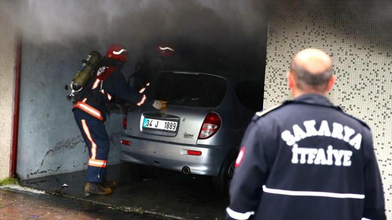 Sakarya'nın Adapazarı ilçesinde, otomobil garajda yandı, alevler apartmana sıçramadan söndürüldü.