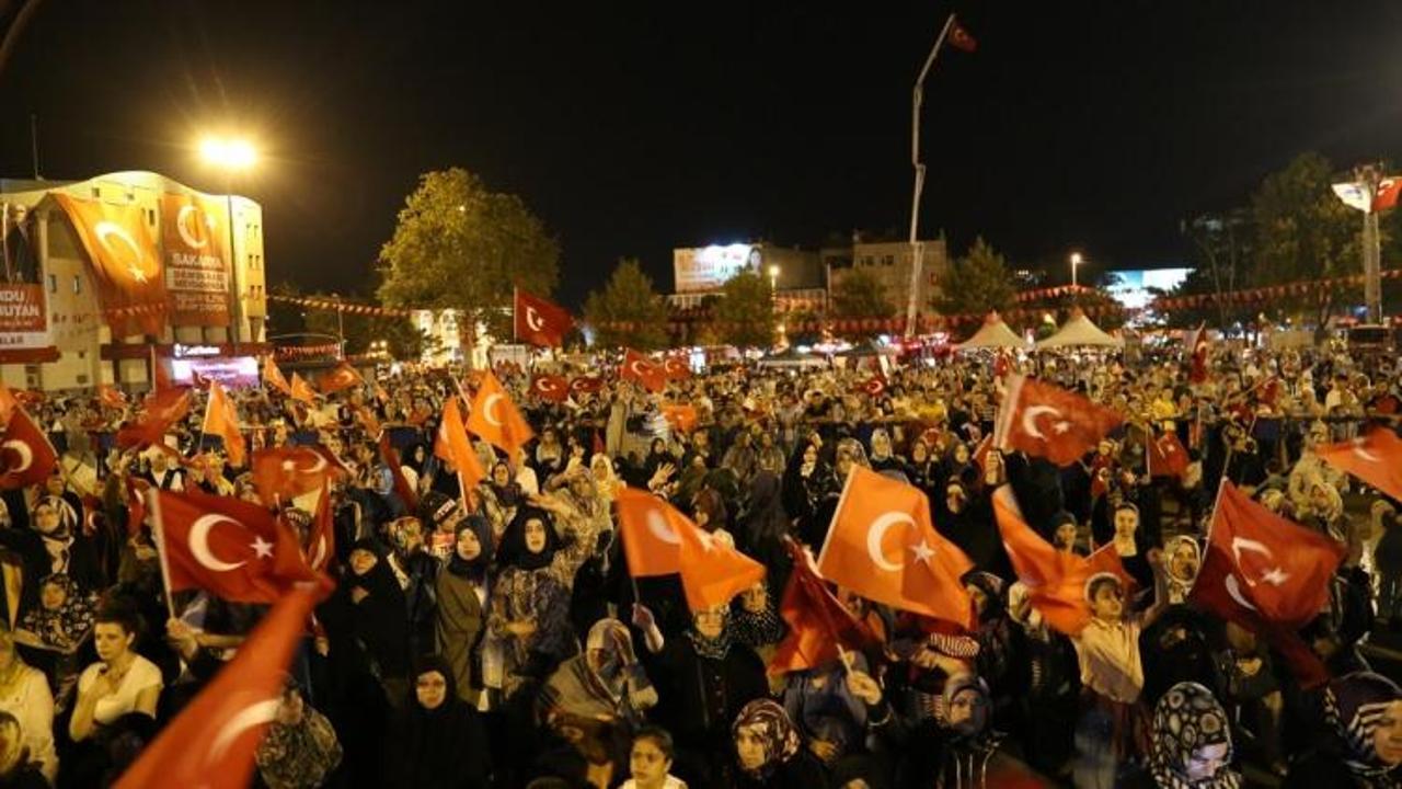 Sakarya'da vatandaşlar, Fetullahçı Terör Örgütü'nün (FETÖ) darbe girişimine tepki için meydanlardaki demokrasi nöbetine devam ediyor.