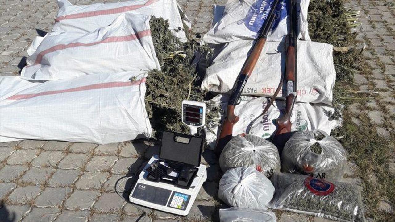 Ekiplerce belirlenen adreslere düzenlenen operasyonda, satışa hazırlanmış 70 kilogram kubar esrar, 10 kök kenevir, 1 kurusıkı tabanca, 2 av tüfeği ve elektronik terazi ele geçirildi.