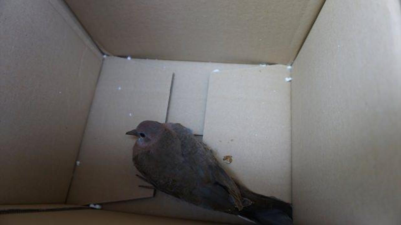 Sakarya'nın Akyazı ilçesinde yere düşen kumru, itfaiye ekiplerinin yardımıyla yuvasına kondu.