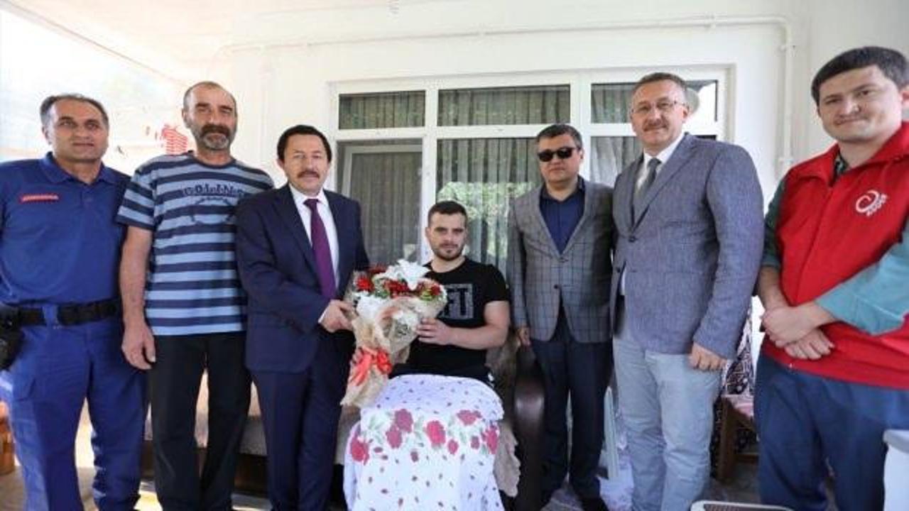 Vali Balkanlıoğlu, Mardin'in Ömerli ilçesi Kovanlı Mahallesi kırsalında düzenlenen ve iki teröristin öldürüldüğü operasyonda yaralanan Jandarma Özel Harekat Timinde görevli Uzman Çavuş Doğan Levent Çakıroğlu'nu, Sapanca ilçesindeki evinde ziyaret etti.