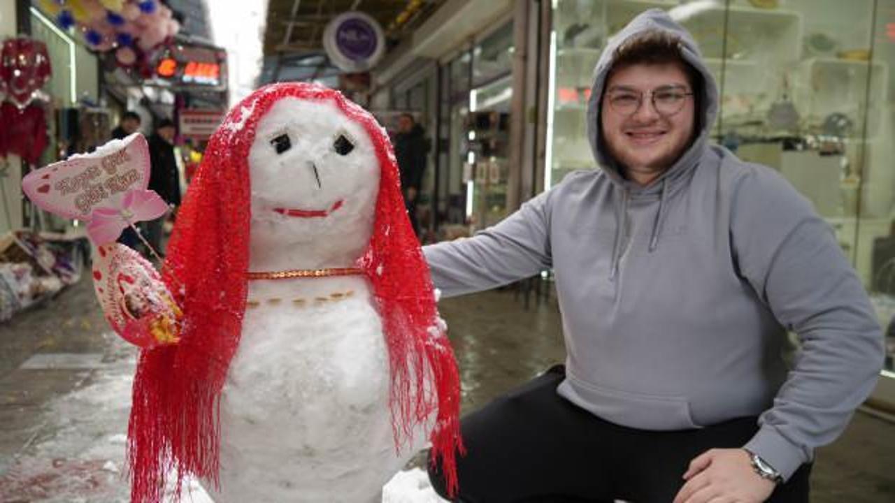 Samsun'da kına ve düğün malzemeleri satarak geçimini sağlayan Enes Esmer, kar yağışını fırsata çevirerek kardan bir gelin yaptı. Yaptığı kardan gelini dükkânındaki malzemelerle süsleyen Esmer, insanların ilgisini çekmeyi başardı.
