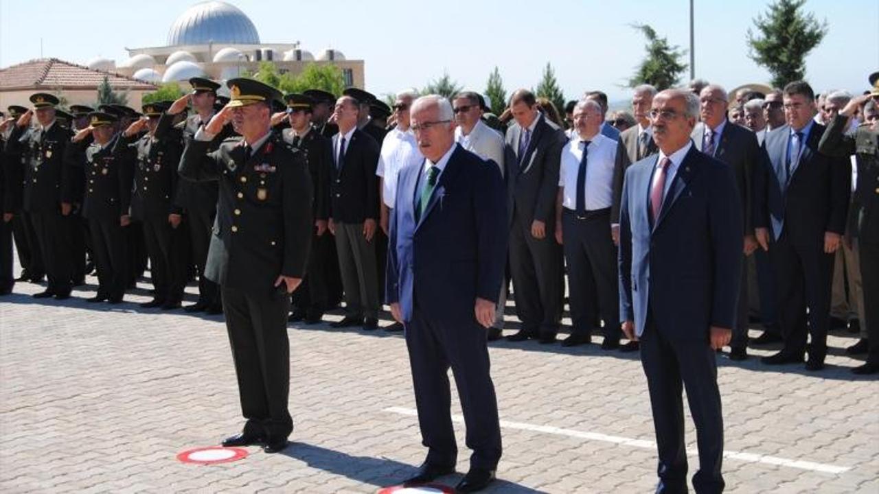 ABONE OLŞehitlik Anıtı'na çelenklerin bırakılmasıyla başlayan tören, saygı duruşu ve İstiklal Marşı'nın okunmasıyla devam etti.